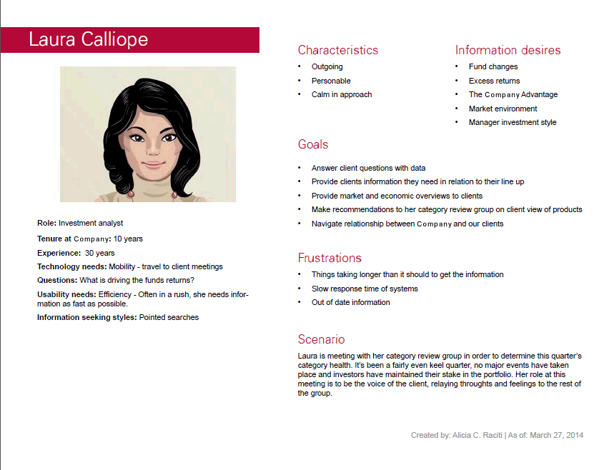 A documentation tool that humanizes a user by capturing their goals and needs.